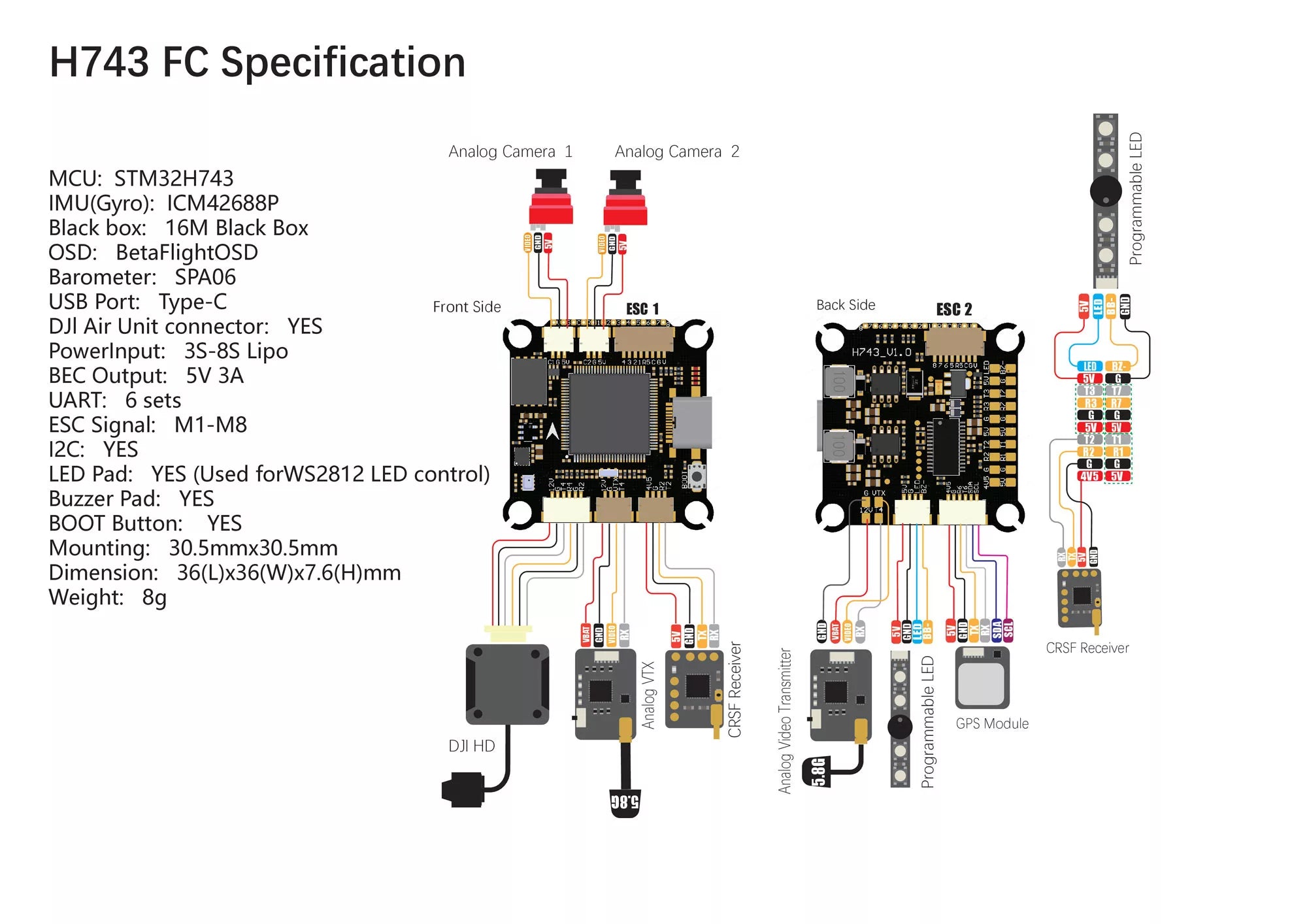 H743 Flight Controller STM32H743 3-8S Betaflight F7 DJI Air Unit FC