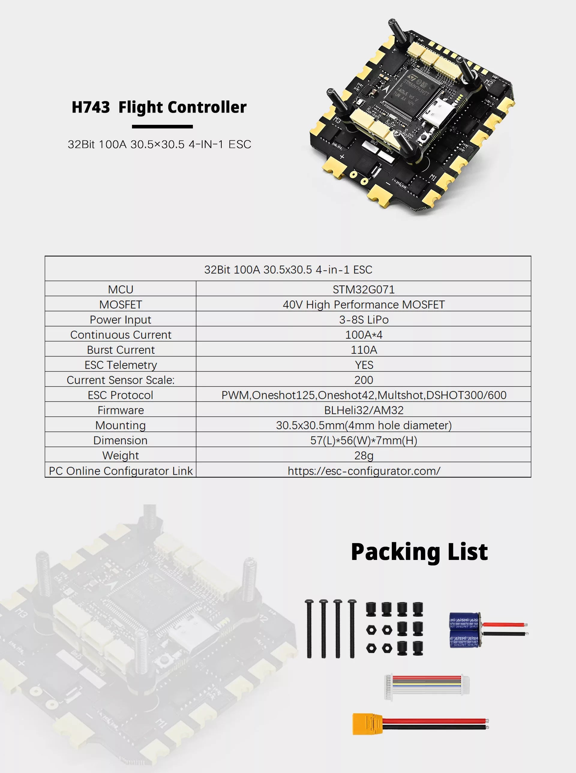 H743 Flight Controller STM32H743 3-8S Betaflight F7 DJI Air Unit FC